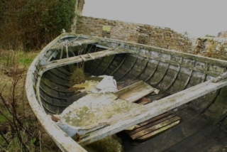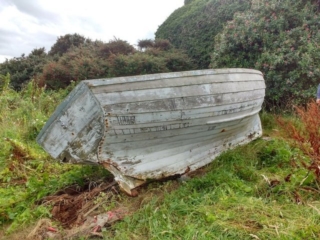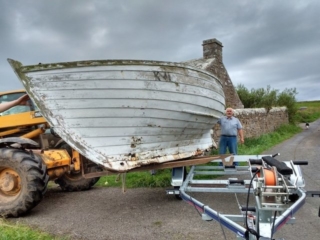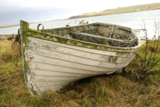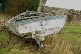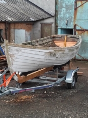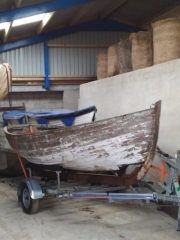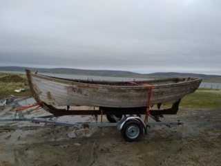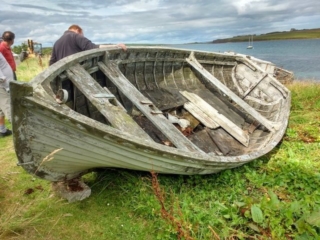 This dinghy, has been a much enjoyed attractive feature at the top of the beach at Herston, South Ronaldsay, Orkney, for many years. The boat, however, has been deteriorating over the passing years and was getting to the stage where she would be in danger of being lost to the elements forever. She has been gifted to the OHBS by the owners Cyril and Martin Annal, who are descendants of James Rosie.