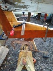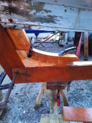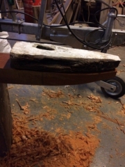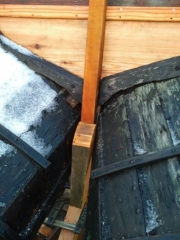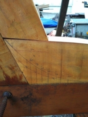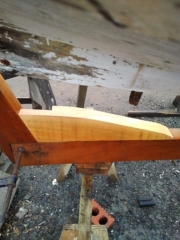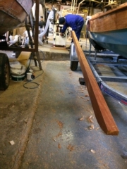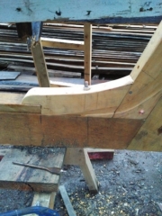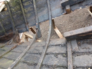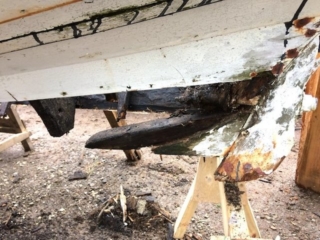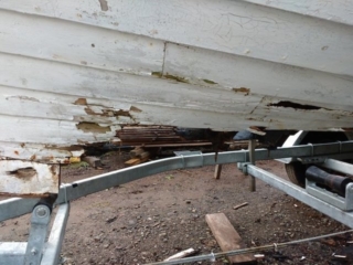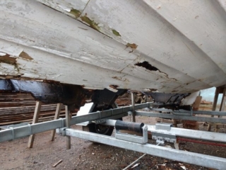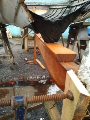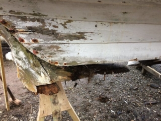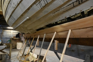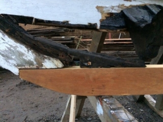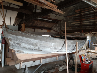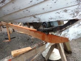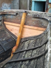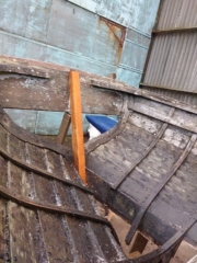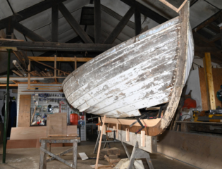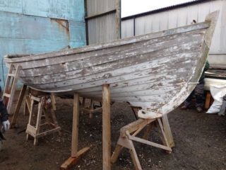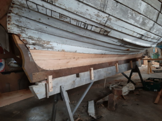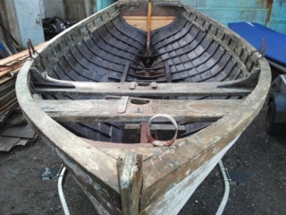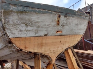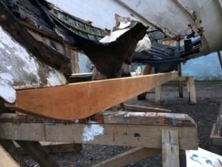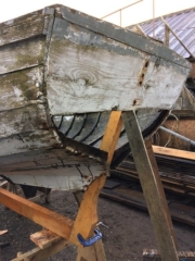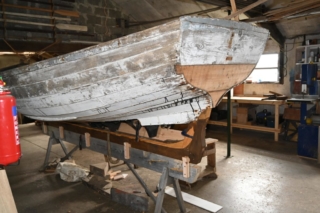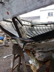 When uplifted, the boat was showing signs of greater deterioration on the keel and lower boards than expected, and she was clearly not many years away from the point of losing structural integrity and being beyond realistic recovery. After a detailed survey at the yard of Orkney boatbuilder Ian Richardson, significant rot was found in the keel, deadwoods, garboards and lower strokes, as well as the stern post and lower transom, all of which required to be urgently removed. The Annal family made a significant contribution towards the cost of materials to replace the rotten structures and OHBS volunteers providing manpower, supplemented by the professional skills of Ian Richardson.
