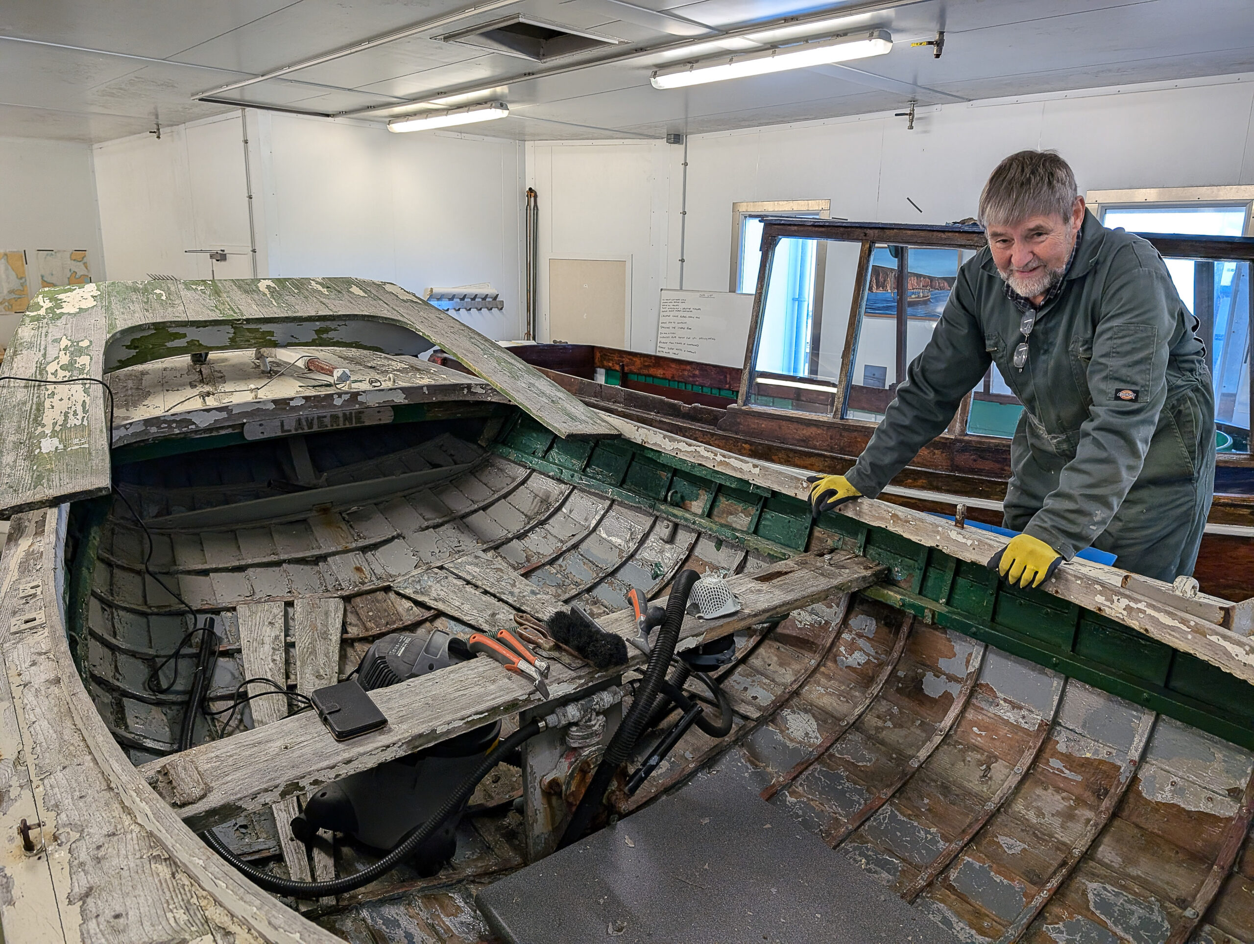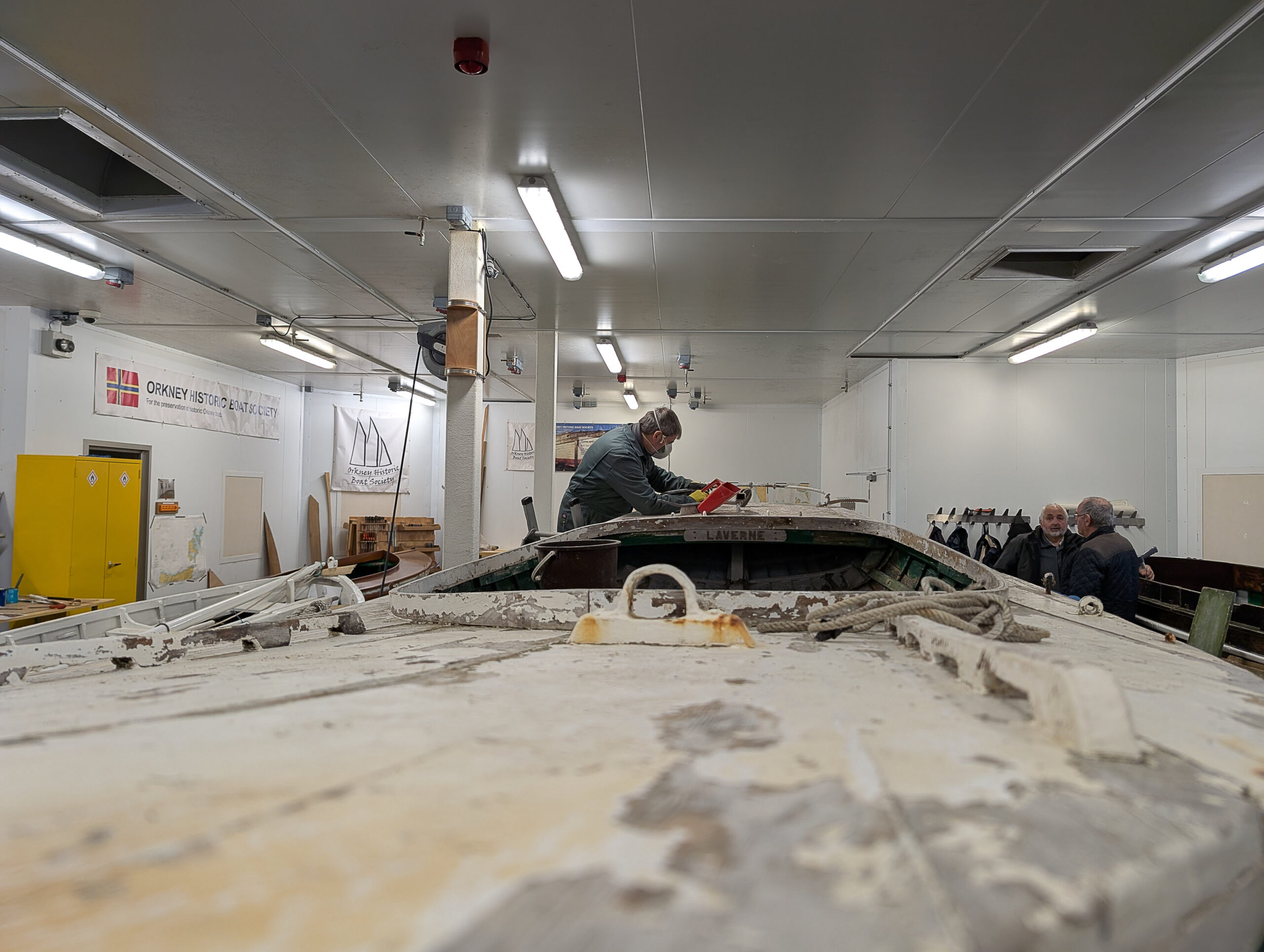After Andy’s death in 2008, Laverne lay in the noust at South End near where she was originally built. Around 2015, Laverne was sold south as a restoration project, and went into storage at Cullen on the Moray Firth. In October 2020, however, she returned to Orkney and is now looked after by the Orkney Historic Boat Society.