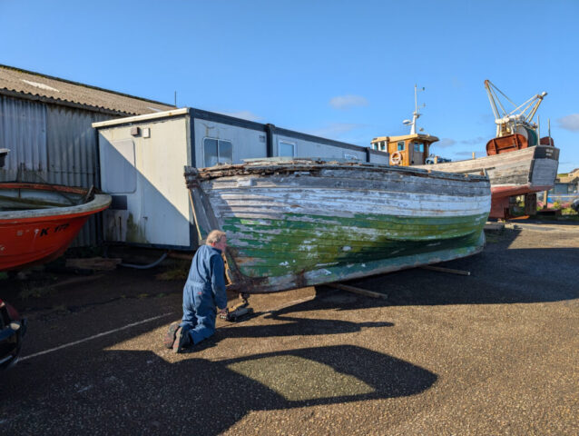 Bruck was removed from the interior of the hull to help even drying of the wood
