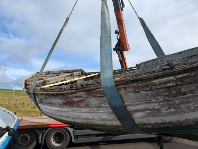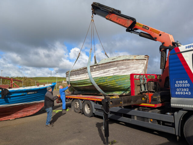 A short while later we managed to schedule a lift and move to covered storage in Stromness.